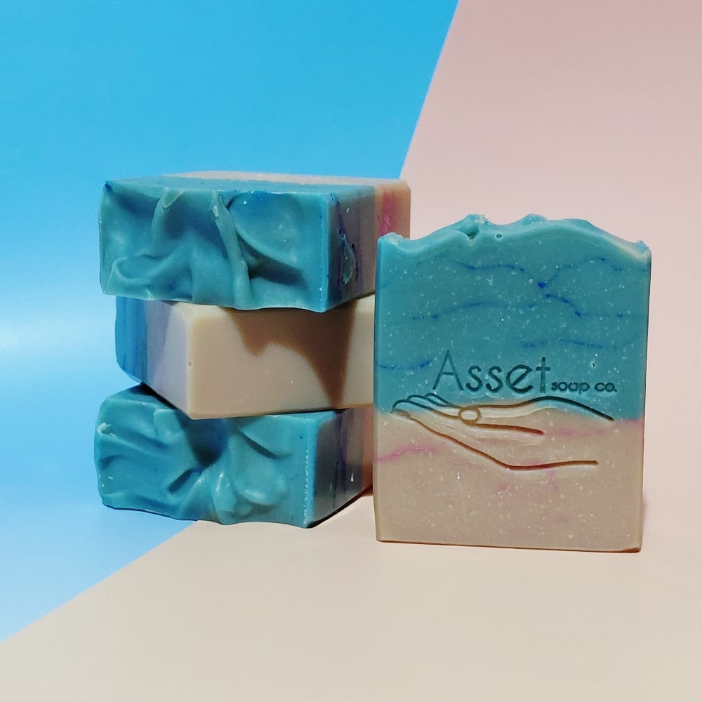Ingredients: Tallow, Distilled Water, Coconut Oil, Olive Oil, Rice Bran Oil, Sodium Hydroxide, Fragrance, Mica, Titanium Dioxide.